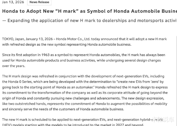 说到本田汽车,很多小伙伴都应该非常熟悉了,采用了H样式的车标设计。目前市面上所有的本田汽车都采用的这个我们极其熟悉的车标。为什么这么说?因为现款车型上的车标从2000年到现在一直沿用下来,但全新一代的本田车标已经发布,预计将会在2026年底大规模使用。不知道看到这样的车标,你觉得时尚吗?
